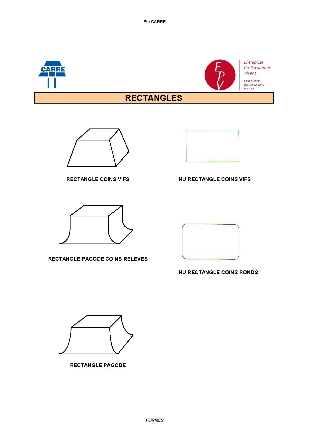 Pour vous y aider, nous mettons à votre disposition un catalogue illustré des formes classiques, accessible ci-contre. Ce support permet de mieux visualiser les modèles existants, d’utiliser le bon vocabulaire et ainsi d’éviter toute confusion dans les échanges.